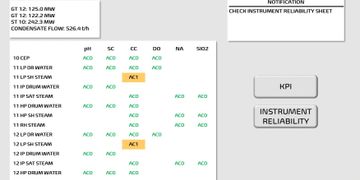Continuous monitoring of water and steam quality related to the treatment and purity is vital for, among others, safety, both for short and long-term availability and efficiency. Our unit-specific chemistry dashboard, installed locally, assesses every 5-minutes the real-time operational and chemistry-related data.